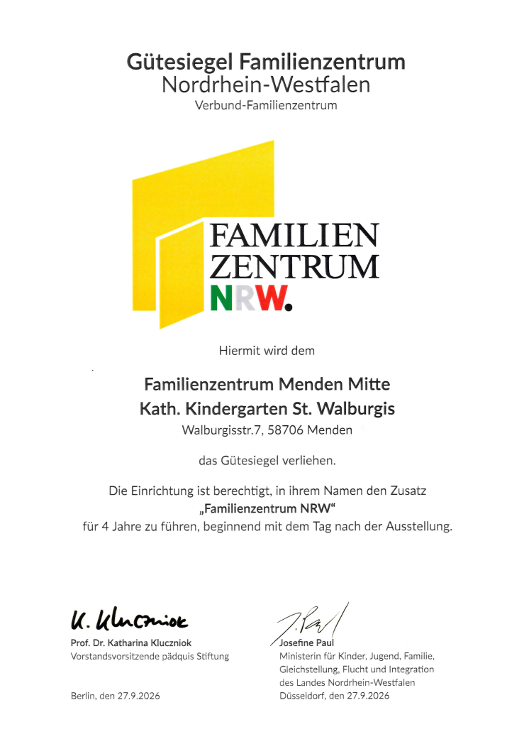 Seit 2010 sind wir gemeinsam mit dem Don Bosco Kindergarten das Katholische Familienzentrum Menden Mitte.